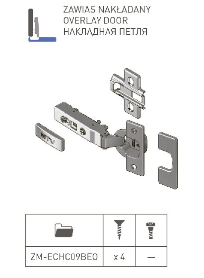 Петля GTV НС 09 накладная самозакрывающаяся с планкой H-0 - устройство, посредством которого фасад прикрепляется к корпусу мебельной конструкции и осуществляется открывание/закрывание дверцы.