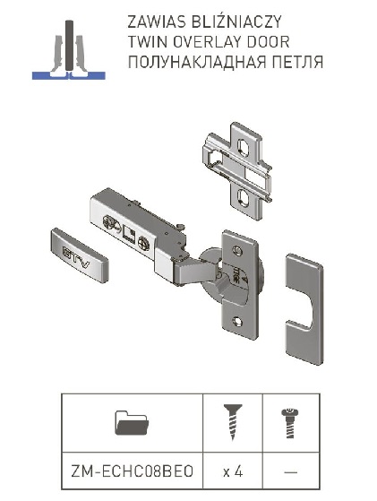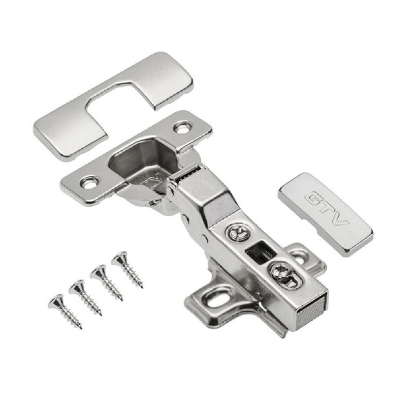 Петля GTV НС 08 полунакладная самозакрывающаяся с планкой H-0 - устройство, посредством которого фасад прикрепляется к корпусу мебельной конструкции и осуществляется открывание/закрывание дверцы.