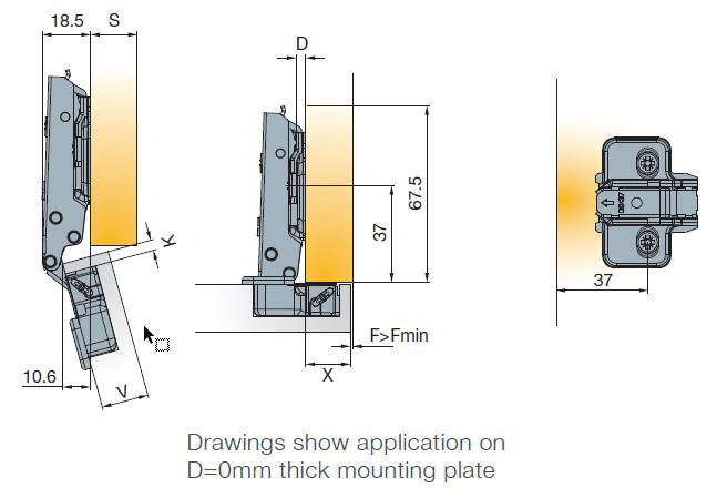 Глубина сверления под чашку петли, мм