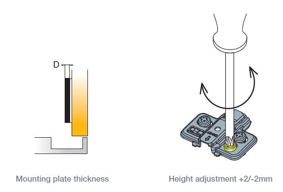 Монтажная планка петли T-type F0 мм крест., регул. эксцентрик, дюбель 5x10,5 мм Арт: 700-0KF0-650-00