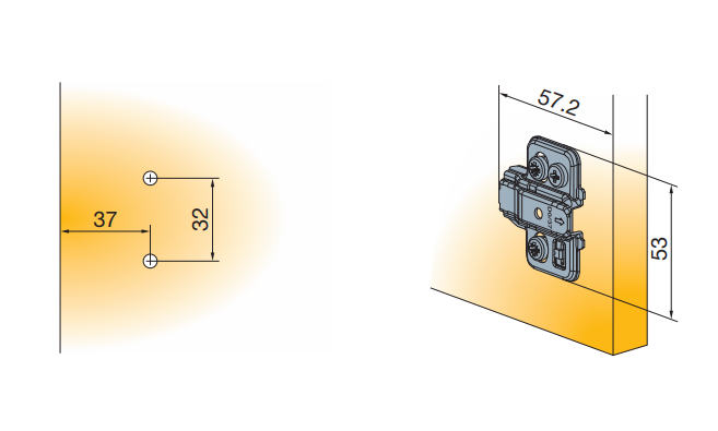 Монтажная планка петли T-type F2 мм крест., регул. эксцентрик, винты 6,3х15 мм Арт: 700-0KC2-054-00