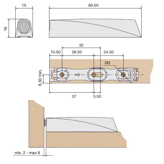 Корпус с планкой для толкателя TL40, для шурупов по дереву, антрацит арт.S40.WA