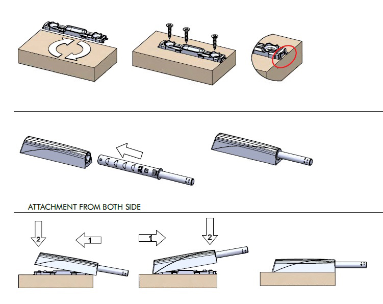 Корпус с планкой для толкателя Cubo, для шурупов по дереву, серый арт.962.CS00.06.00