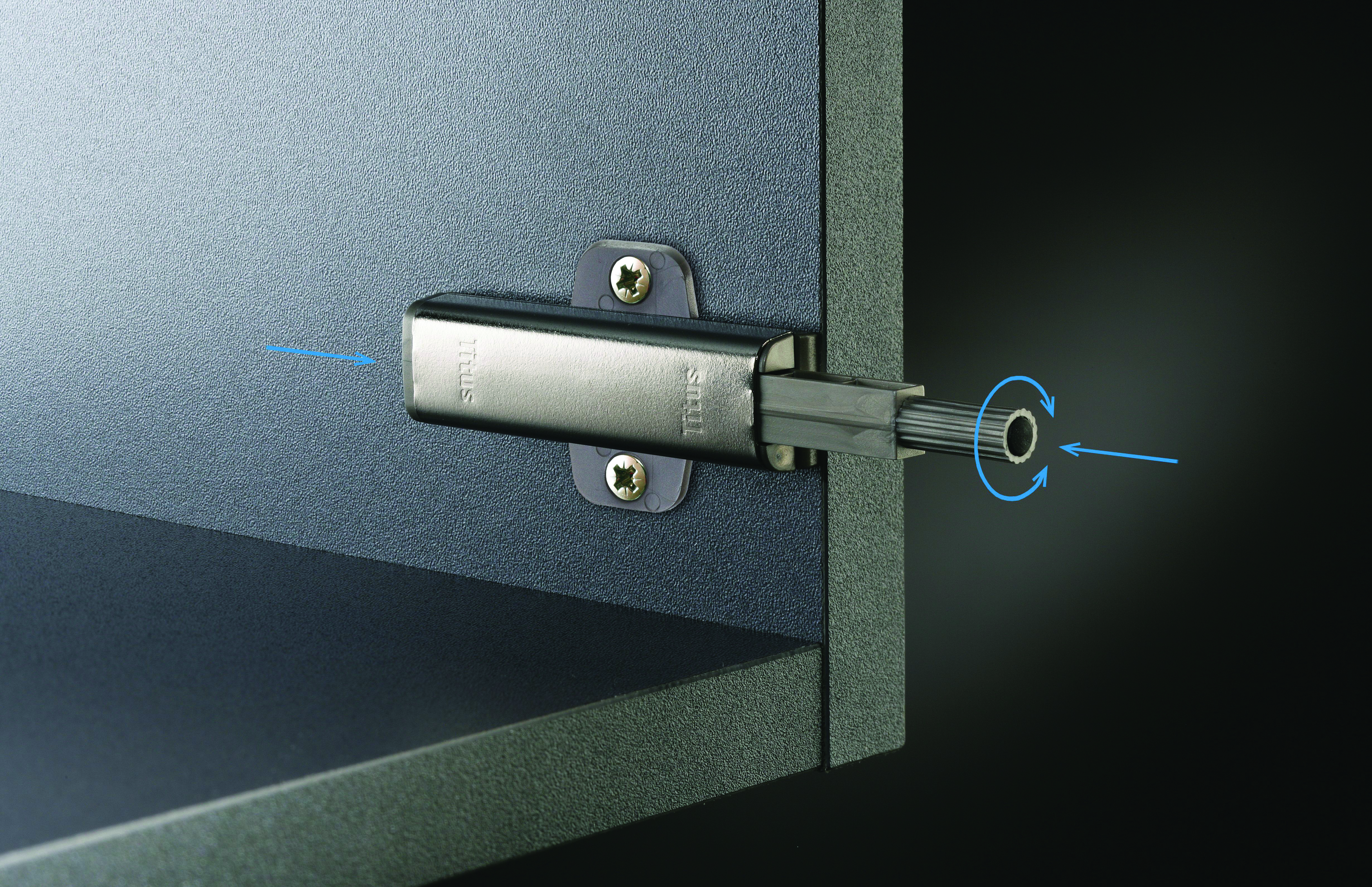 - регулировка устройства обеспечивает плотное закрывание и надежную работу дверок и ящиков даже в случае неточного монтажа;