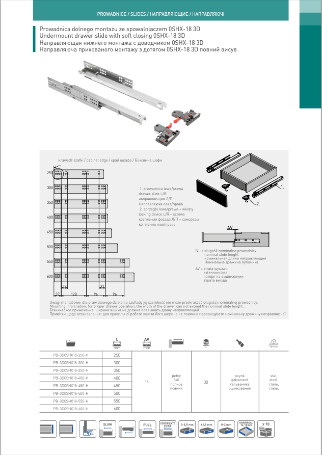 Направляющие MODERN SLIDE L-300 с 3D регулировкой полного выдвижения для деревянных ящиков с доводчиком - механизмы, используемые в различных мебельных конструкциях с выдвижными ящиками. Характерная особенность направляющих Модерн Слайд - скрытый монтаж, когда их установка осуществляется не на боковины ящика, а под его дно.
