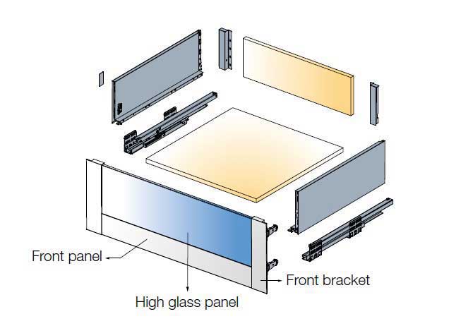 Соединитель фронтальный для ящиков Tekform slimline высотой 145 мм с высоким стеклом