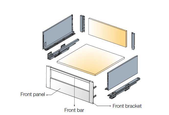 Соединитель фронтальный для ящиков Tekform slimline высотой 182 мм с планкой