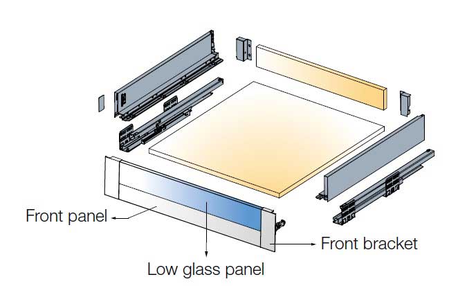Соединитель фронтальный для ящиков Tekform slimline DW70 со стеклом