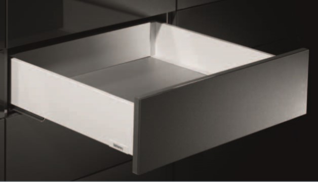 Tekform Slimline Tacto: в ящик Tekform Slimline с двойными стенками добавлена сенсорная система открывания Tacto для фасадов ящиков без ручек.