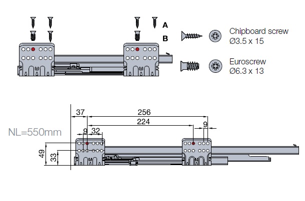 Tekform Slimline Tacto имеет активатор, встроенный в направляющую ящика, в то время как все остальные компоненты остаются такими же, как и для «стандартной» версии Slimline, а также положения сверления и фиксации.