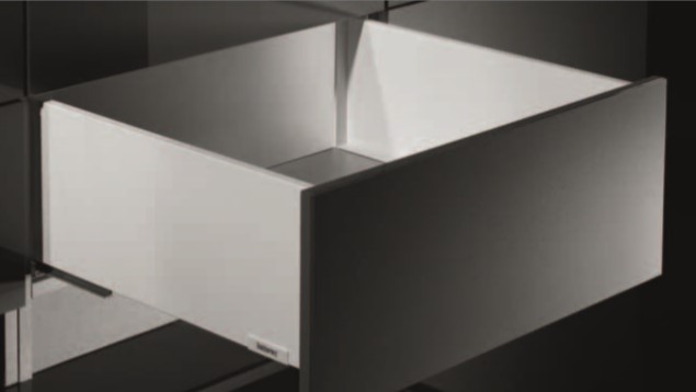 Tekform Slimline Tacto: в ящик Tekform Slimline с двойными стенками добавлена сенсорная система открывания Tacto для фасадов ящиков без ручек.