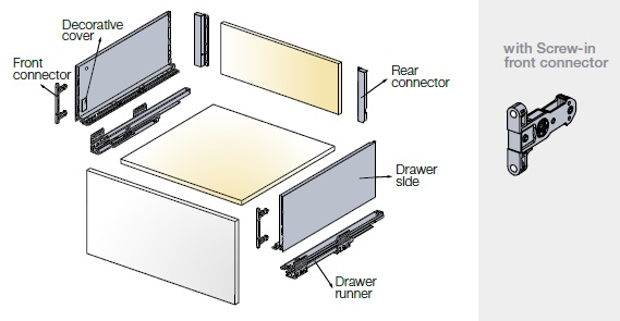 Tekform Slimline Tacto имеет активатор, встроенный в направляющую ящика, в то время как все остальные компоненты остаются такими же, как и для «стандартной» версии Slimline, а также положения сверления и фиксации.