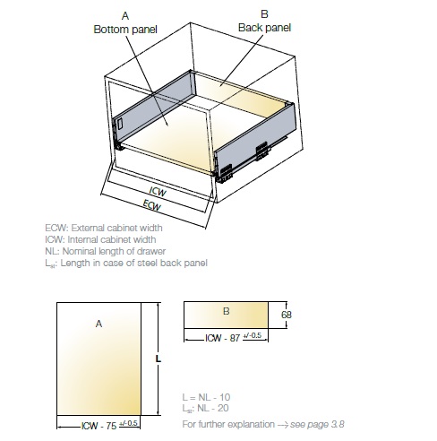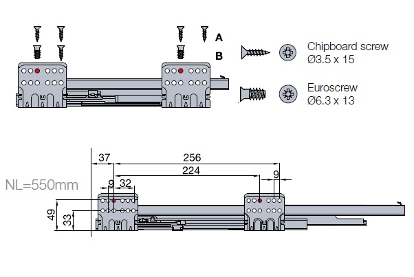 Tekform Slimline Tacto имеет активатор, встроенный в направляющую ящика, в то время как все остальные компоненты остаются такими же, как и для «стандартной» версии Slimline, а также положения сверления и фиксации.